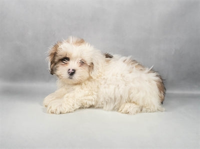 Asher is a cute little Havapoo, or a mix between a Havanese and Poodle. Havapoo's are hypoallergenic pups and love to cuddle, a great combo! Asher will weigh between 10 - 18 pounds when he is fully grown. Come get some attention from him in the store!